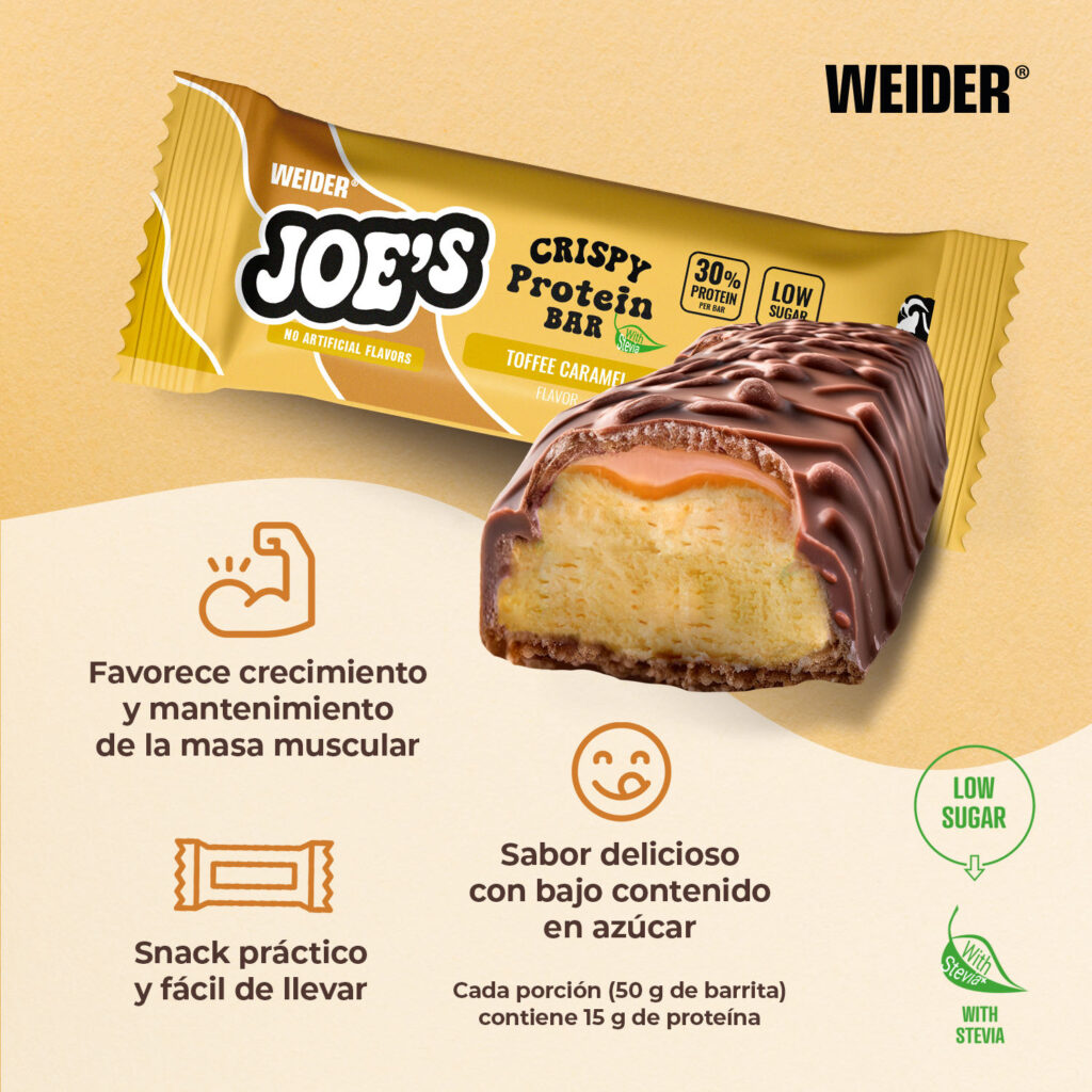 A Joe’s Crispy Protein Bar egy magas fehérjetartalmú, alacsony hozzáadott cukortartalmú protein szelet, amelyet úgy terveztek, hogy táplálkozási értékkel és kiváló ízzel támogassa a teljesítményedet és regenerációdat – akár edzés előtt vagy után, akár egyszerűen energiasnack-ként a nap folyamán. A szeletet bármikor fogyaszthatod: reggelire, uzsonnára vagy edzés előtt/után – az étrendedtől és céljaidtól függően.