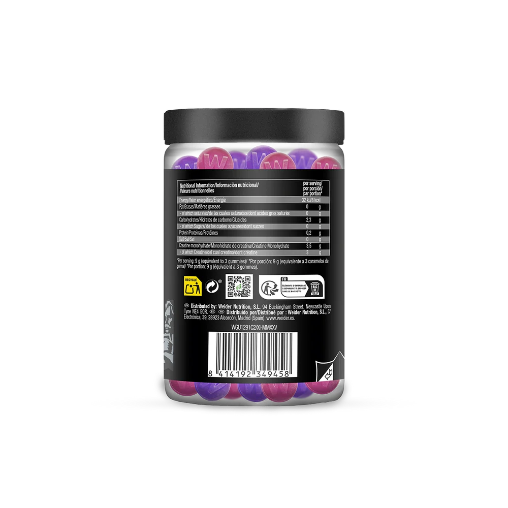 A kreatin az egyik legkutatottabb, tudományosan alátámasztott sporttáplálékkiegészítő: szerepe az erő- és teljesítménynövelésben, valamint a regeneráció gyorsításában széles körben ismert. A Weider Micronized Creatine Gummies kreatin-monohidrátot tartalmaz ízletes gumicukor formában – így azok számára is ideális kiegészítő, akik nem szeretnének porral vagy kapszulákkal bajlódni.