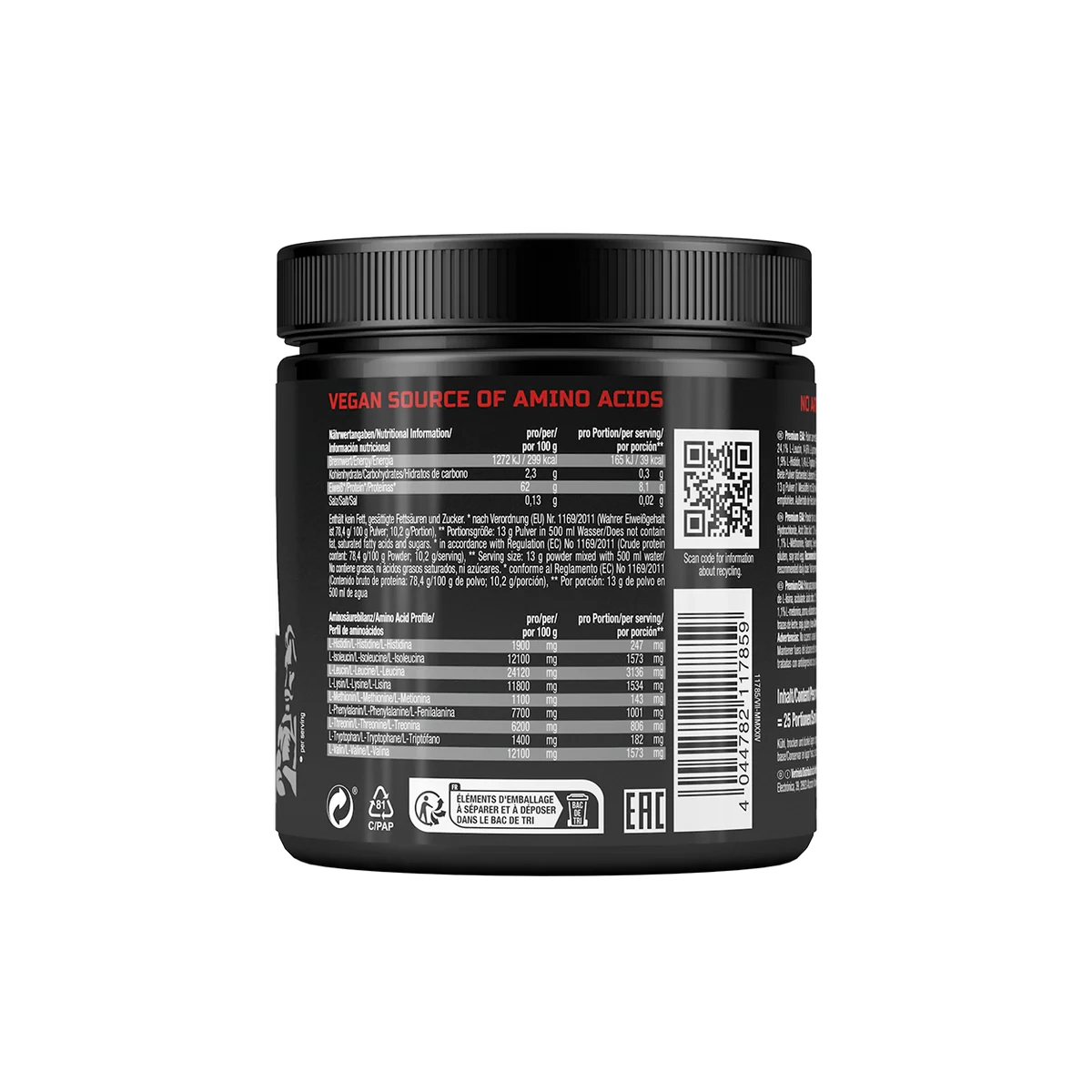 Az esszenciális aminosavak olyan fehérje építőkövei, amelyeket az emberi szervezet nem tud önállóan előállítani. Ezért elengedhetetlen a táplálékkal történő megfelelő bevitel. A kilenc esszenciális aminosav további bevitele különösen a sportolók és a fizikailag aktív emberek számára előnyös. A finom prémium EAA minden adagja több mint 10 g EAA-val látja el a szervezetet, beleértve az elágazó láncú L-leucint, L-izoleucint és L-valint (elágazó láncú aminosavak; BCAA) a bizonyított 2:1:1 arányban. A vegán por ideális szénhidrátmentes és alacsony kalóriatartalmú edzés közbeni táplálékként az izmok számára. Érezd, mit kínál a termék edzés közben!