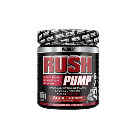 A RUSH Pump az ideális edzés előtti stimulánsok nélkül mindenkinek, aki kerülni akarja a koffeint – például a késő délutáni vagy esti edzések során. Az L-citrullin és L-arginin aminosavak fontos előanyagai a szervezet saját jelzőmolekulájának, a nitrogén-oxidnak, amely többek között az erek tágulásáért is felelős. A Rush Pump nitrátban gazdag Oxystorm® kivonattal, ízletes meggy ízben kapható. Dobozonként 15 adagot tartalmaz. Az optimális hatékonyság érdekében javasoljuk, hogy körülbelül 30 perccel az edzés előtt vegye be!